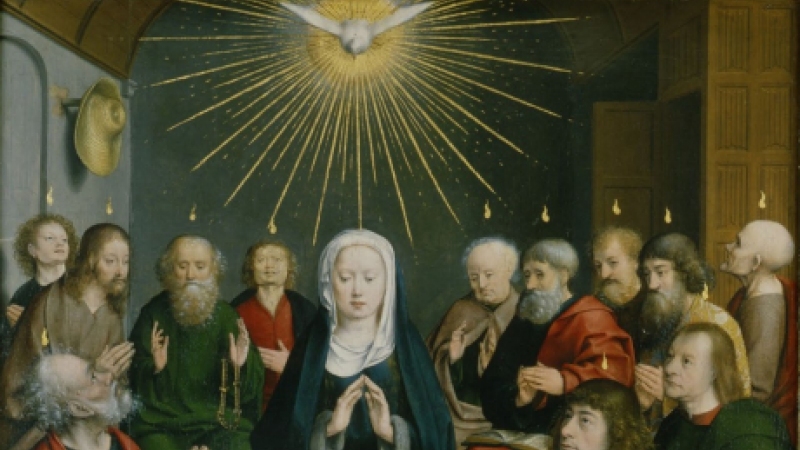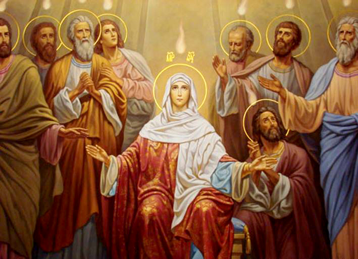 Our LORD Jesus Christ, being seated on the Right Hand of God, sent, as He had promised, the Holy Ghost upon the Apostles, Who, after His Ascension, continued in prayer at Jerusalem, in company with the Blessed Virgin, awaiting the fulfillment of His Promise.