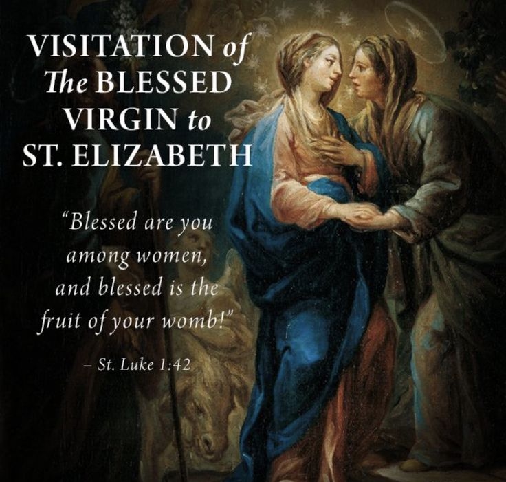 The feast of the Visitation recalls to us the following great truths and events: The visit of the Blessed Virgin Mary to her cousin Elizabeth shortly after the Annunciation; Elizabeth’s proclaiming of Mary—under the inspiration of the Holy Ghost —as Mother of God and “blessed among women;” Mary’s singing of the sublime hymn, Magnificat (“My soul proclaims the greatness of the LORD”) which has become a part of the daily official prayer of the Church. The Visitation is frequently depicted in art, and was the central mystery of Saint Francis de Sales’ devotions.