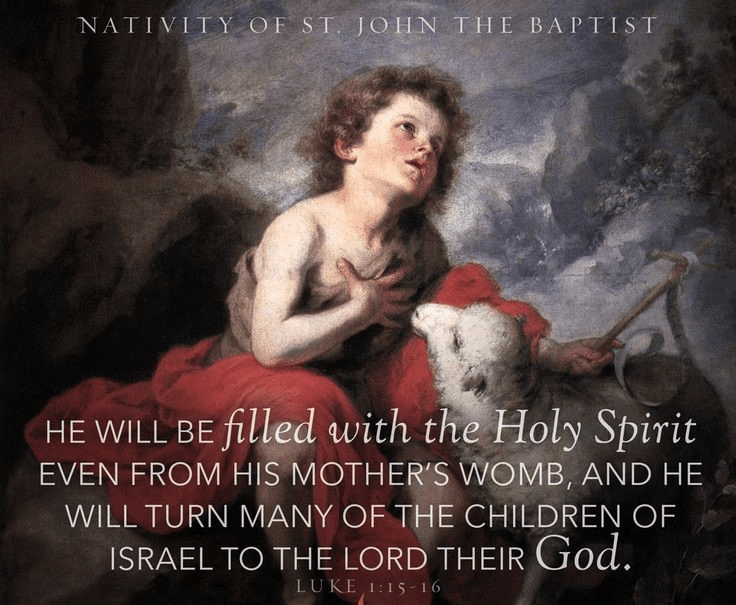 Why does the Church celebrate the birthday of John the Baptist? Because John is the last of all the prophets. Not only his message, but his life itself proclaims the coming of Christ. John the Baptist’s mission in life, the purpose of his God-given existence, was to prepare the way of the LORD: “Behold, the Lamb of God!” And John the Baptist’s joyful leap in his mother’s womb reveals what God desires for all of us: to be transformed by the presence of Jesus and Mary. “With John the Baptist, the Holy Spirit begins the restoration to man of ‘the Divine likeness’, prefiguring what he would achieve with and in Christ” (CCC 720)