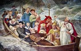 In the Gospel (Lk5:1-11), the Church is here represented by Peter’s boat. In the ship of the Church of Jesus, beaten by the waves and tempest of this world, let us put our trust in God.