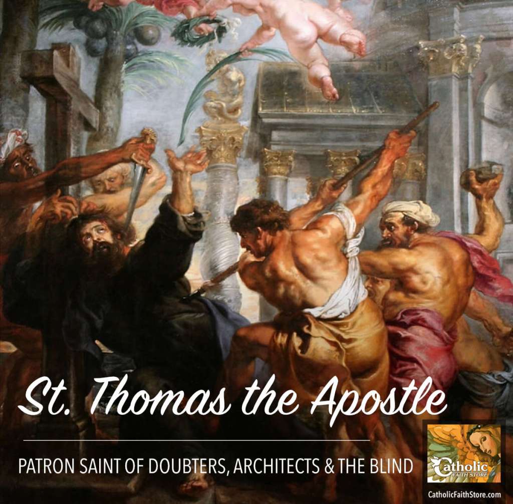 St. Thomas was one of the fishermen on the Sea of Galilee whom Our LORD called to be His Apostles. By nature slow to believe, too apt to see difficulties, and to look at the dark side of things, he had withal a most sympathetic, loving, and courageous heart. Once when Jesus spoke of the mansions in His Father’s house, Thomas, in his simplicity, asked: “Master, we do not know where you are going; how can we know the way?” When Jesus turned to go toward Bethany to the grave of Lazarus, the desponding apostle at once feared the worst for his beloved LORD, yet cried out bravely to the rest: “Let us also go and die with Him.” After the Resurrection, incredulity again prevailed, and while the wounds of the Crucifixion were imprinted vividly on his affectionate mind, he would not credit the report that Christ had indeed Risen. But at the actual sight of the pierced hands and side, and the gentle rebuke of His Saviour, unbelief was gone forever; and his faith and ours has ever triumphed in the joyous utterance into which he broke: “My LORD and my God!”