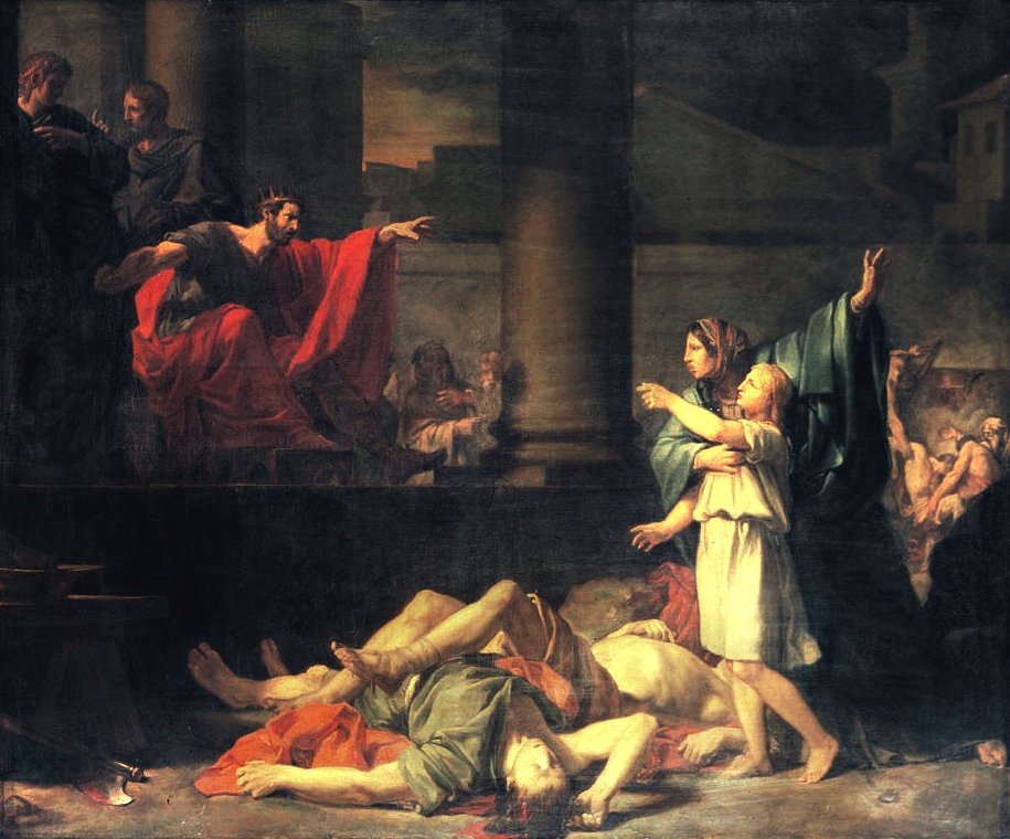 On the following day, her seven sons were brought before the emperor, who represented to them that, as they had neither father nor mother, he would adopt them as his own children and provide for them most bountifully, if they would obey him and sacrifice to the gods. Should they, however, prove as obstinate as their parents had been, they had nothing to expect but torments and death. “This is what we desire,“ answered Crescentius, “that we, like our parents, may die for the sake of Christ. Neither promises, nor threats, nor torments can make us faithless to Christ.“…. Thus gloriously died the seven sons of Saint Symphorosa, reminding us of the illustrious martyrdom of the several Machabees, in the reign of the wicked king Antiochus.