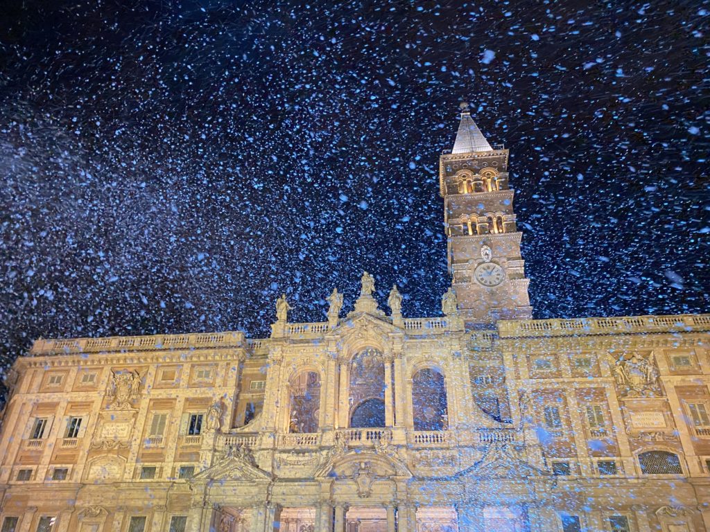 This date marks the dedication of Rome’s first Marian basilica by Pope Sixtus III around the year 435 to honour the Our Lady,after the Council of Ephesus in 431, in which the mother of Jesus was acclaimed as Mother of God. The original structure of Saint Mary Major was built in the 3RD century under Pope Liberius on the Esquiline at Rome. It is said that Mary signalled her choice of the church’s site with a miraculous snowfall in the heat of August. This was the sign she gave to John, a devout and wealthy patrician, commanding that a church be built. For this reason that basilica is known as Saint-Mary-of-the-Snow, and the name is also given to the feast of its dedication. After the basilica’s construction, a miraculous shower of white rose petals fell upon the gathered faithful. The basilica is still known as Maria ad Nives, “Mary of the Snows”.The stations for Christmas are held in this church, because some relics of the Crib of Bethlehem preserved there. The Pope was also accustomed to officiate there on the first Sunday in advent, at the beginning of the ecclesiastical year.