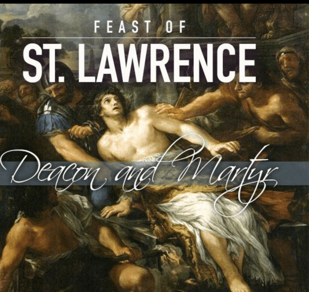 Saint Lawrence was one of the Roman Church’s seven deacons who were personally responsible for the care of the city’s poor. When the Roman clergy was rooted out and killed under the Emperor Valerian in the year 258, Lawrence saw his beloved Pope Sixtus II hauled off to martyrdom. Lawrence stood by, weeping that he could not share their fate. “I was your minister,” he said, “when you consecrated the Blood of Our LORD; why do you leave me behind now that you are about to shed your own?” The holy pope comforted him with the words, “Do not weep, my son; in three days you will follow me.” This prophecy came true.The prefect of the city knew the rich offerings which the Christians put into the hands of the clergy, and he demanded the treasures of the Roman Church from Lawrence, their guardian.The Saint promised, at the end of three days, to show him riches exceeding all the wealth of the empire, says that Lawrence at once liquidated the Church’s possessions and dispersed them to the poor. When the prefect of Rome heard of this, he demanded that Lawrence turn over the money. Three days later Lawrence brought him the “Church’s treasure”: the destitute, the orphans, the blind, the lame the infirm, and the religious who lived by the alms of the faithful. For this, Lawrence was roasted on an iron grill.