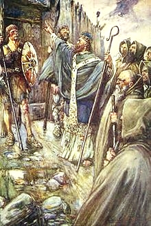Aidan of Lindisfarne, born in Ireland, may have studied under St. Senan before becoming a monk at Iona. At the request of King Oswald of Northumbria, Aidan went to Lindisfarne as Bishop and was known throughout the kingdom for his knowledge of the Bible, his learning, his eloquent preaching, his holiness, his distaste for pomp, his kindness to the poor, and the miracles attributed to him. He founded a monastery at Lindisfarne that became known as the English Iona and was a centre of learning and missionary activity for all of northern England, spreading the Gospel to both the Anglo-Saxon nobility and the socially disenfranchised (including children and slaves). He died in 651 at the royal castle at Bamburgh. He is known as the Apostle of Northumbria.