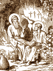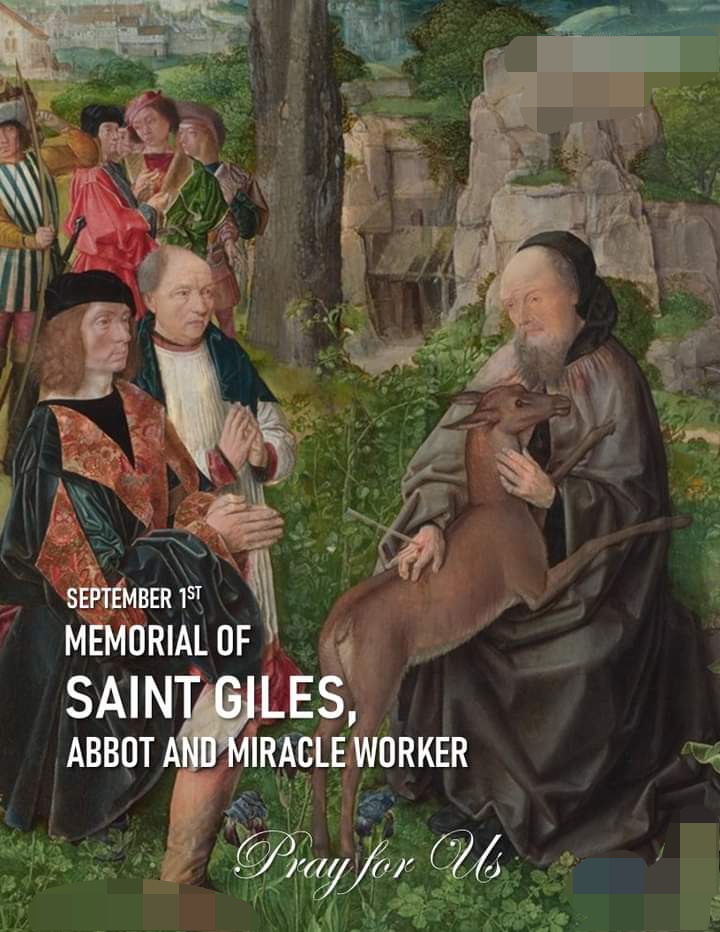 Saint Giles, an Athenian, lived probably in the second half of the Seventh Century. He fled to the south of France, where he lived as a hermit in a vast forest and founded a celebrated monastery in the diocese of Nimes. Saint Urban (Pope) made his feast common to the Universal Church. His feast was kept at Rome with great solemnity with fireworks, music, races through the streets, etc. He invoked for the cure of epilepsy and other diseases. He was so famous on account of his miracles, that a great number of churches were dedicated to him.The Abbey erected in his honour was a magnificent structure and centre of pilgrimage during the Middle Ages.