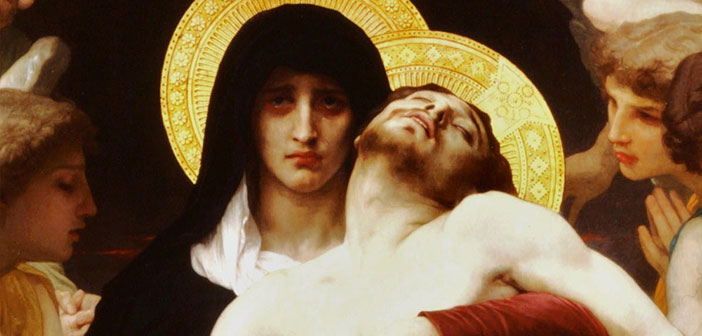 What words can never describe the unspeakable anguish that rent the Sacred Heart of Mary as she looked upon her Divine Son hanging on the Cross! Every wound in Jesus’ Body was also a wound in the heart of Mary: every fibre, every nerve throbbing in agony, every pang He suffered re-echoed in her heart. She endured by her compassion a share in all of the anguish of His Passion. Why did Mary suffer all of this? That she might be our Mother, the Mother of mankind. She brought forth her Divine Son without a pang, suffered many a piercing pang when from the Cross her dying Son commended to her the sinful sons of men. It was indeed a Motherhood of sorrow that she suffered for our sins: for mine.