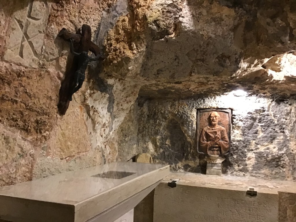 In paintings, Jerome sometimes holds a large rock, a symbol of mortification. Saint Jérôme, born in Dalmatia in 329, born to a rich pagan family, educated at Rome, was soon led into the gravest disorders. Inspired by Heaven, he was converted and was baptised in 365 after receiving a fine education in the classics in Rome. He moved from Rome to different places before finally settling in a cave in Bethlehem, out of an intense devotion to Christ’s life. He studied Hebrew in penance for temptations. The greatest fruit of his lifelong study and writing was the Vulgate, the popular Latin translation of the Bible commissioned by Pope Damasus I. “Ignorance of Scripture is ignorance of Christ”, wrote Jerome. He died in 420 and is one of the four great Latin Fathers of the Church.