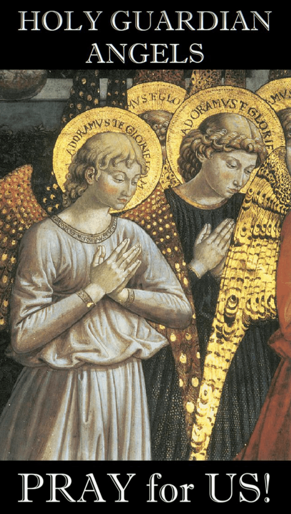 God‘s love for us was not satisfied with giving us, His Son, Jesus, for our Redeemer, and Mary for our Advocate; He has been pleased to give us also His Angels to be our guardians “He hath given His angels charge over thee to keep thee and all thy ways“ [Psalm 90:2]. These holy spirits and princes of heaven are always present with us, and assist us in all of our actions. And on this account, out of regard to our guardian Angels, we aught carefully to refrain from every action, which can displease them.