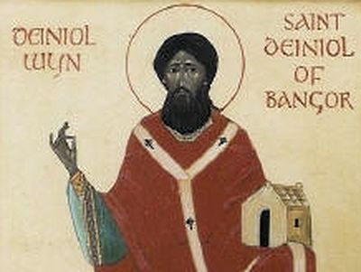 Deiniol embraced the religious life and is said to have studied under Cadoc of Llancarfan. Sir David Trevor describes Deiniol as one of the seven blessed cousins who had spent part of his early life as a hermit “on the arm of Pembrokeshire” but was called to be a Bishop despite deficiencies in his formal education. Deiniol soon left Powys for Gwynedd where he founded the monastery of Bangor, Gwyneddunder the patronage of Maelgwn Gwynedd who endowed it with lands and privileges, later raising it to the rank of the official seat of a Bishop, sharing a common boundary with the principality of Gwynedd. Deiniol is said to have been consecrated to that See by St. Dubricius in the year 516. Deiniol spent the remainder of his days there as Abbot and Bishop.